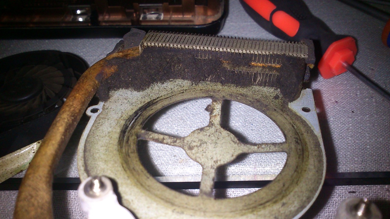 Con el tiempo los portátiles van acumulando suciedad en el módulo termico. ( conjunto de ventidalor y disipador ) veasé imagenes